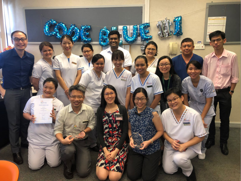 Dr Tan Hui Li, Nurse Clinician (APN), said that the new code blue team required additional manpower and involvement from different staff. “Previously, only doctors responded to a Code Blue,” she explained, “and we wanted to boost the capabilities for effective resuscitation and provide 24/7 coverage. Thus we sought partnerships from all the ICUs and developed rosters. We even got nurses from National Heart Centre to provide coverage for SGH Block 4! Top-down support from SGH and NHCS Chief Nurses and nursing administrators helped us get the resources and manpower. Also prior to this project, we had already built a spirit of collaboration among all ICUs through routine interactions, multi-ICU training programmes and Quality Improvement projects. We also engaged staff via multiple dialogues to address their concerns and anxiety. And we followed through with comprehensive training. So the ICUs and NHCS nursing readily supported the Code Blue team when we asked for help.