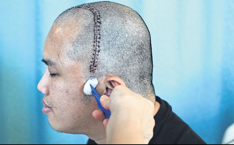 at a follow-up consultation at the National Neuroscience Institute to have his staples removed on April 5 last year, after his brain surgery the previous month.