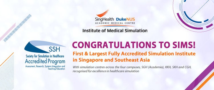 The SingHealth Duke-NUS Institute of Medical Simulation (SIMS) is proud to announce that we are the first and largest healthcare simulation institute in Singapore and Southeast Asia to have achieved full accreditation across four campuses by the Society for Simulation in Healthcare (SSH) – the leading healthcare simulation accreditation body in the world.