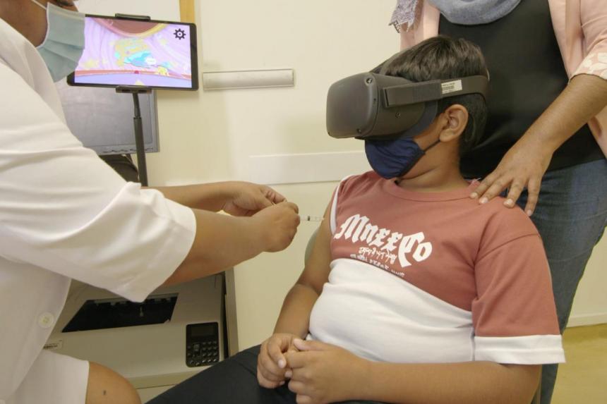 SINGAPORE - Children who get their vaccines at polyclinics may soon be given a virtual reality (VR) headset to distract them from any pain and anxiety during the vaccine administration.
