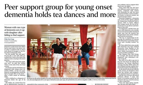 Dementia Singapore, a dementia care social service agency, piloted the Young Onset Dementia Club in January 2022 to better address their unique needs. Ms Lim of Dementia & Co is an adviser and facilitator of the club.
